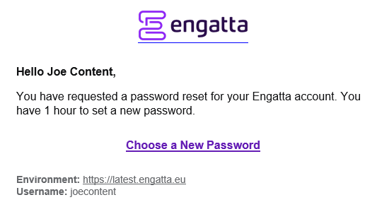 When a user forgets the password, a System Administrator could use the "Reset Password" option in Engatta to create a new temporary password. As of Release 8, the user itself can request a new password by using the "Forgot Password" link on the login screen. The user will receive an email with a password reset link. The link is valid for 1 hour.